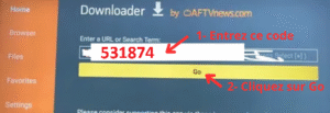 5- Une fois installé, ouvrez Downloader et dans la barre de recherche tapez simplement le code de notre application 531874 et cliquez sur GO.