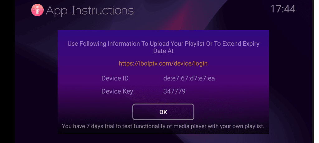 La configuration s’arrête pour vous à cette étape puisque tout ce que vous aurez à faire c’est de nous transmettre par mail ou par WhatsApp les informations de votre application affiché sur l’écran de votre TV à savoir l’adresse mac et le device key.